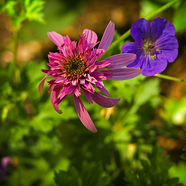 I planted these flowers together (Echinacea purpurea ‘Razzmatazz’ and Geranium sanguineum ‘Rozanne’) because they share two common elements.